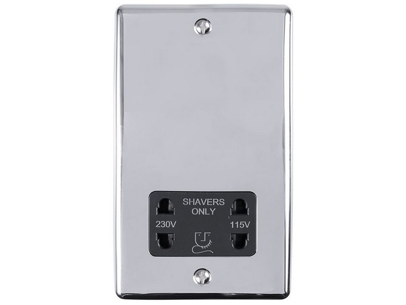 ELENSHSPCB | EUROLITE ENHANCE DECORATIVE POLISHED CHROME SHAVER SOCKET WITH BLACK TRIM