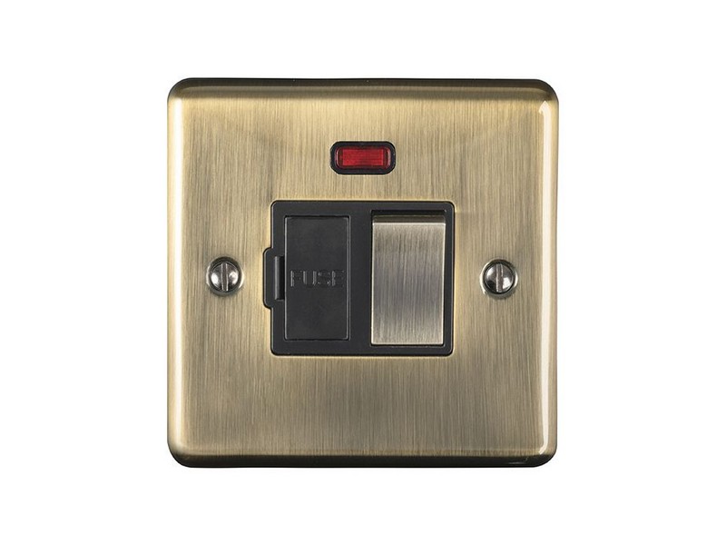 ENHANCE DECORATIVE ANTIQUE BRASS NEON SWITCHED FUSE SPUR WITH BLACK TRIM
