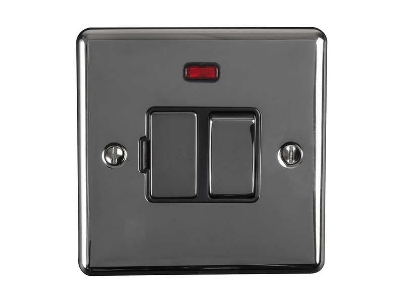 ELENSWFNBNB | EUROLITE ENHANCE DECORATIVE BLACK NICKEL NEON SWITCHED FUSE SPUR WITH BLACK TRIM