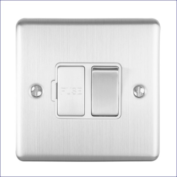 ELENSWFSSW | EUROLITE ENHANCE DECORATIVE SATIN STAINLESS STEEL SWITCHED FUSE SPUR WITH WHITE TRIM