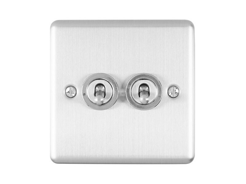 ELENT2SWSS | EUROLITE ENHANCE DECORATIVE SATIN STAINLESS STEEL 2 GANG TOGGLE SWITCH
