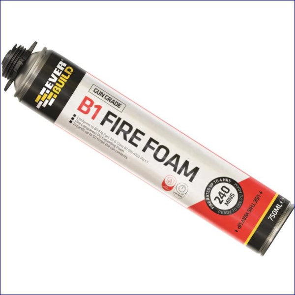 Everbuild Firefoam B1 Gun Grade is a quick-setting fire rated, one part polyurethane foam. It expands on application to yield up to 50 times the can contents. Fire rated up to 4 hours in certain joint configurations. For use with an Everbuild Professional Foam Gun, once cured the foam can be cut, sawn or plastered over after only one hour.