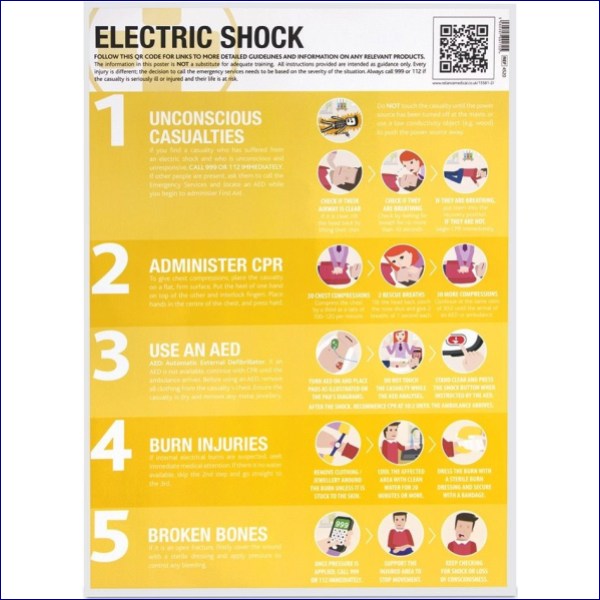 FA4520 | Workplace Safety First Aid Information Posters – 4520: Electric Shock Guidance