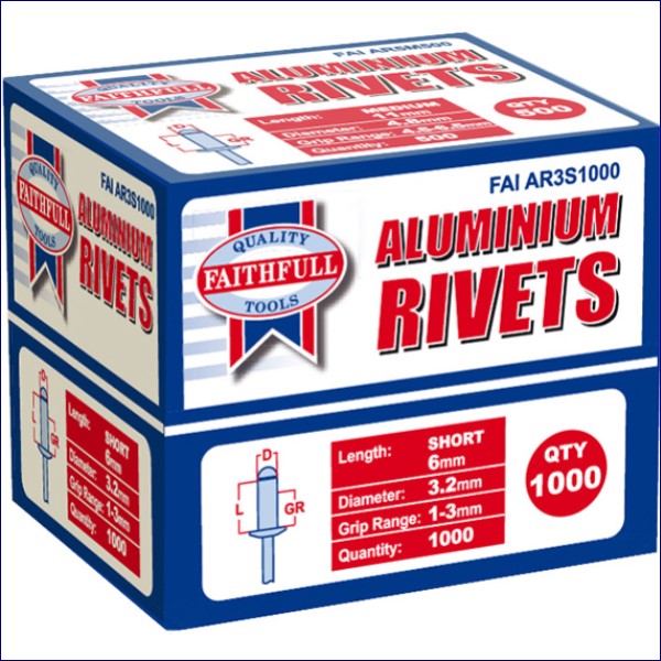 FAIAR3S1000 | Faithfull Aluminium Rivets 3.2 x 6mm Short Bulk Pack of 1000