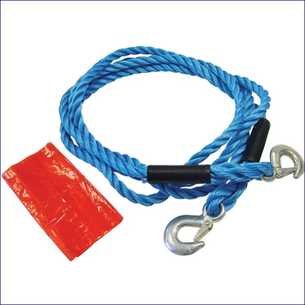 This Faithfull Tow Rope is made from polypropylene and fitted with heavy-duty forged carabiner style end hooks and supplied with a red middle marker. The rope has an approximate overall length of 4 metres, with a breaking strain of 2000kg (2 Tonnes) and is rot resistant.