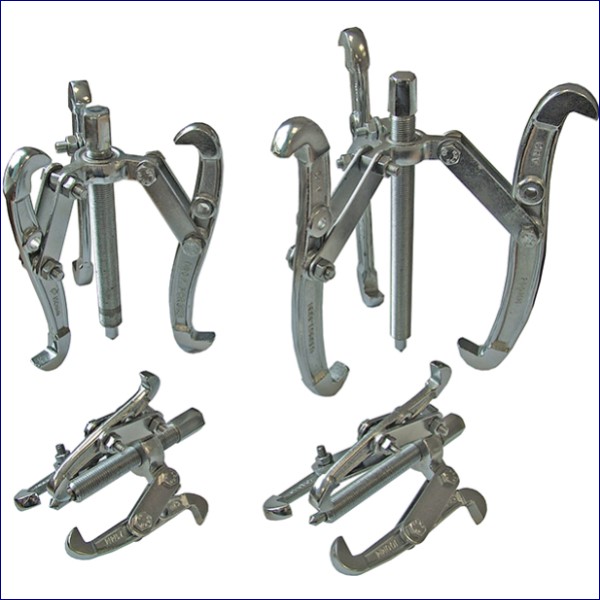 This Faithfull four piece set contains 75mm, 100mm, 150mm and 200mm pullers with reversible claw legs for internal and external pulls. The Pullers are manufactured from chrome vanadium steel, heat treated for added strength and chrome plated to resist corrosion. The swivelling thrust plate helps to prevent damage to shaft ends and is fitted with a Hex head forcing screw. Suitable for use with a ratchet wrench or spanner.