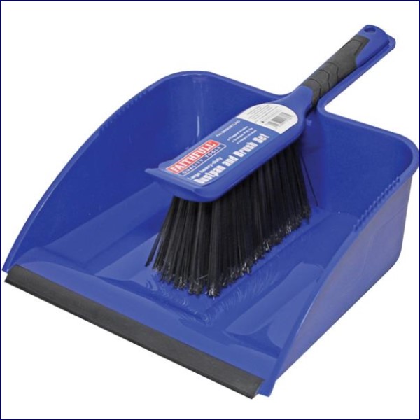 Faithfull large, heavy-duty plastic, Dustpan and Brush Set. The dustpan incorporates a PVC lip to ensure easy loading. The brush has flagged bristles that are ideal for sweeping smaller debris and an integral scraper for removing stubborn matter.