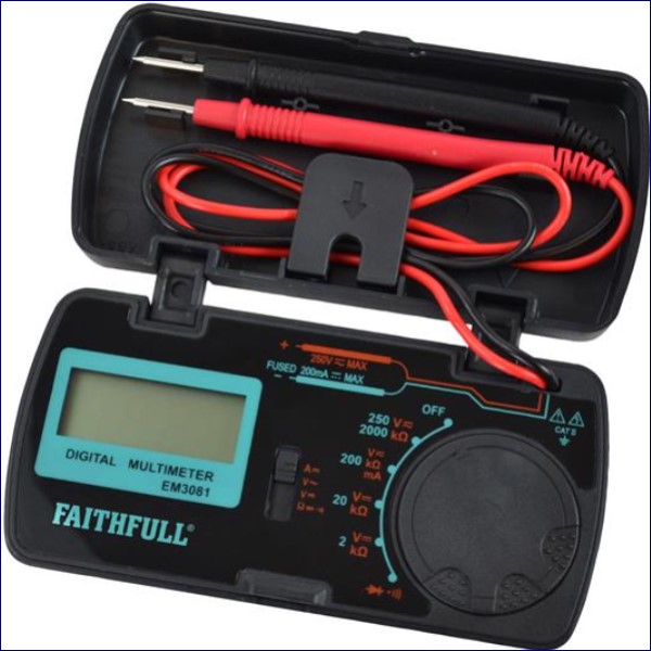 The Faithfull Pocket Portable Multimeter is a compact unit contained within a flip open case. It is ideal for performing many checks used in radio and electronic testing, car electrics, household appliances, portable tools and similar equipment.