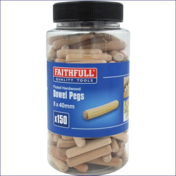 FAIDOW8150T | Faithfull Wood Dowels Fluted 40 x 8mm (Tub 150)