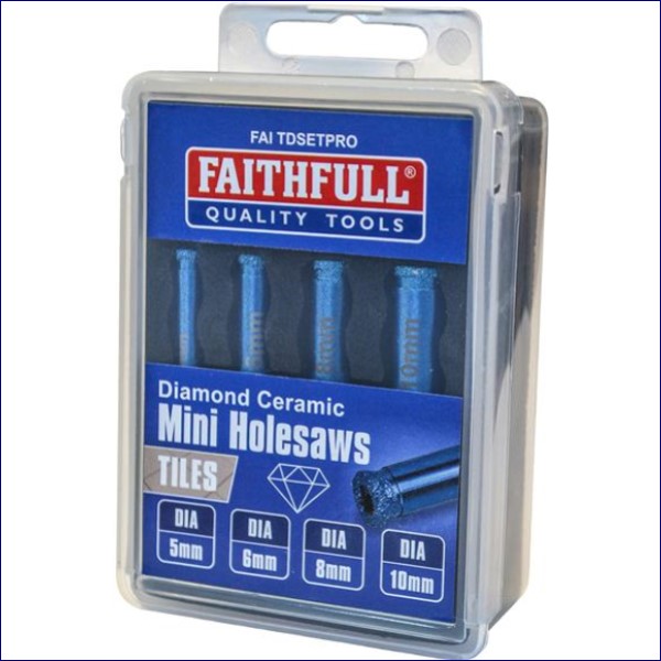 FAITDSETPRO | Faithfull Diamond Ceramic Mini Holesaw Set, 4 Piece