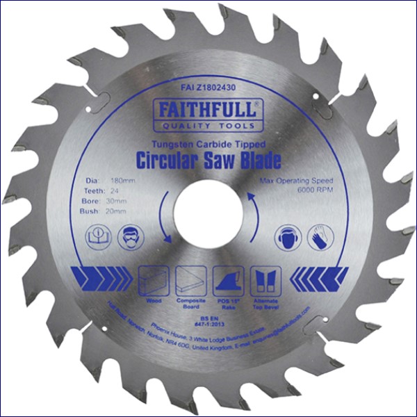 FAIZ1802430 | Faithfull TCT Circular Saw Blade 180 x 30mm x 24T POS