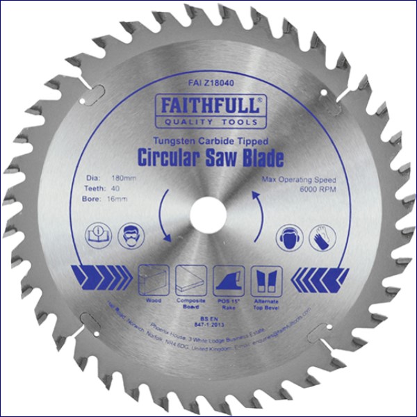 FAIZ18040 | Faithfull TCT Circular Saw Blade 180 x 16mm x 40T POS
