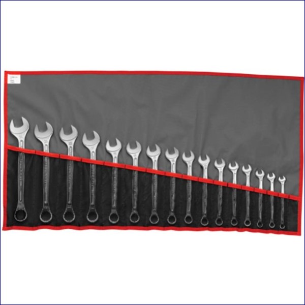 The set is supplied in a handy tool roll and contains the following sizes: 1/4, 5/16, 11/32, 3/8, 7/16, 1/2, 9/16, 5/8, 11/16, 3/4, 13/16, 7/8, 15/16, 1, 1.1/16, 1.1/18 and 1.1/4in.