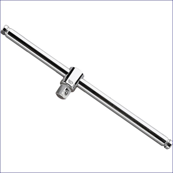 This Facom sliding T-bar has a 1/2in Drive to fit 1/2 inch sockets or extensions. The T bar slides and has a friction head which allows the bar to be used as a T or L handle. Grooves at either end of the bar prevent it from sliding out the drive. The long bar enables more leverage, and easy two-handed use, thus making tightening and loosening fastenings easier.