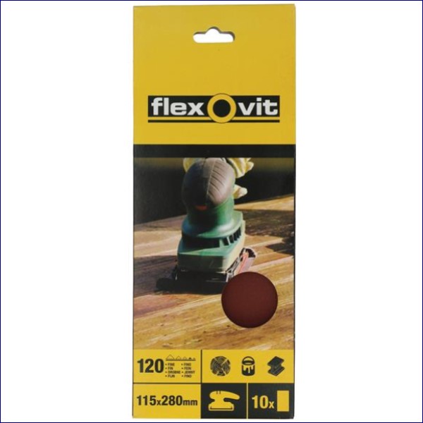 FLV26328 | Flexovit 1/2 Sanding Sheets Orbital Plain Fine 120 Grit (Pack 10)