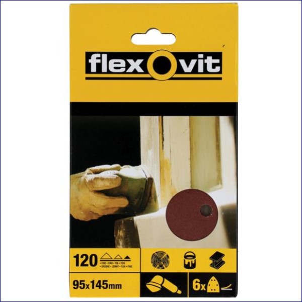 FLV26409 | Flexovit Detail Hook & Loop Sanding Sheets 95x145mm Fine 120G (Pack 6)