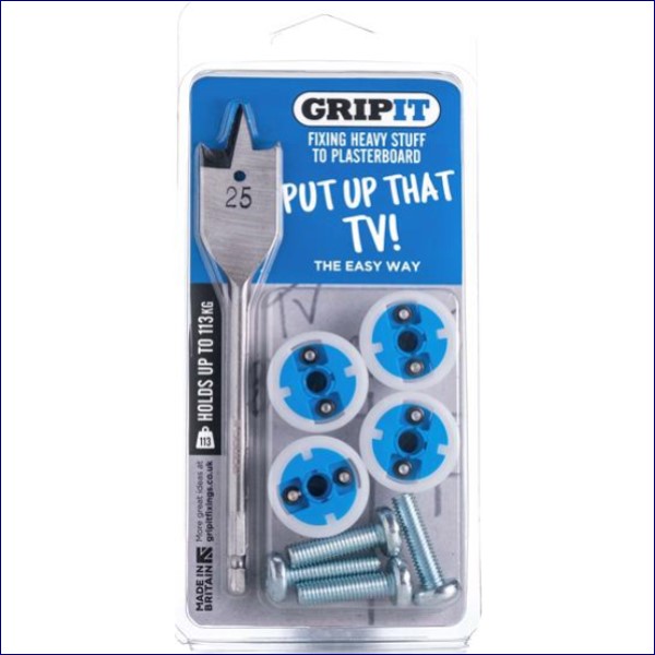 The Gripit TV Kit includes everything you need to mount a TV bracket to a plasterboard wall.