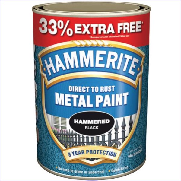 HMMHFB750AV | Hammerite Direct to Rust Hammered Finish Metal Paint Black 750ml + 33%