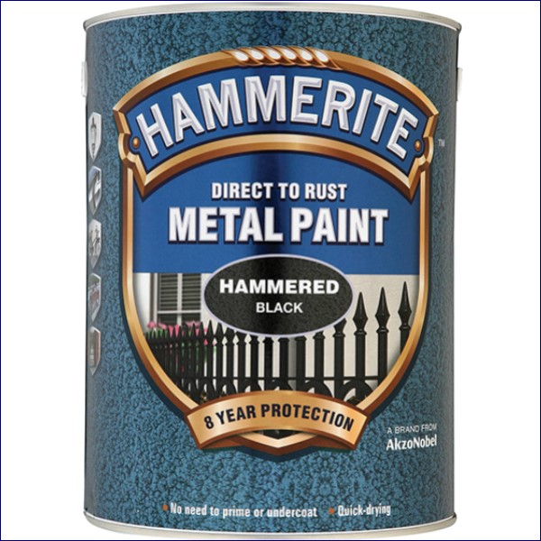 HMMHFBL5L | Hammerite Direct to Rust Hammered Finish Metal Paint Black 5 Litre