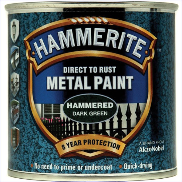 HMMHFDG250 | Hammerite Direct to Rust Hammered Finish Metal Paint Dark Green 250ml