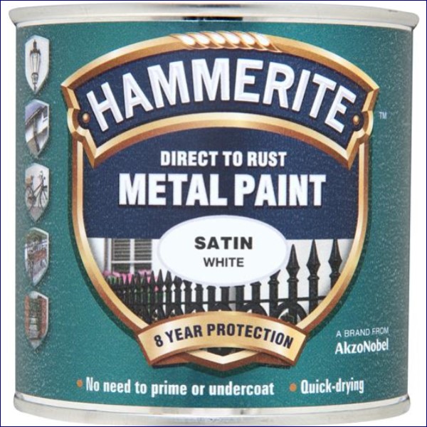 HMMSAFW250 | Hammerite Direct to Rust Satin Finish Metal Paint White 250ml