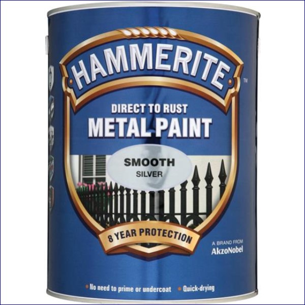 HMMSFS5L | Hammerite Direct to Rust Smooth Finish Metal Paint Silver 5 Litre