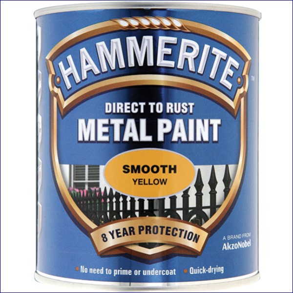 HMMSFY750 | Hammerite Direct to Rust Smooth Finish Metal Paint Yellow 750ml