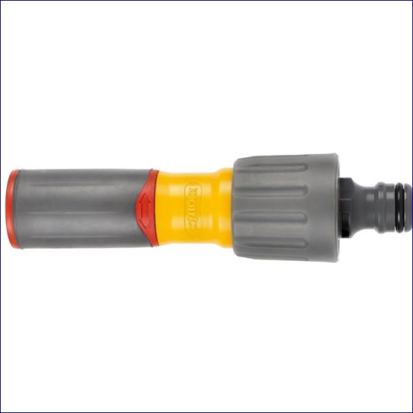 The Hozelock 3-in-1 Nozzle has an ergonomic design with a soft touch grip and instruction arrows. It produces 3 different sprays: jet, cone and fine rose. Compatible with all other connectors.