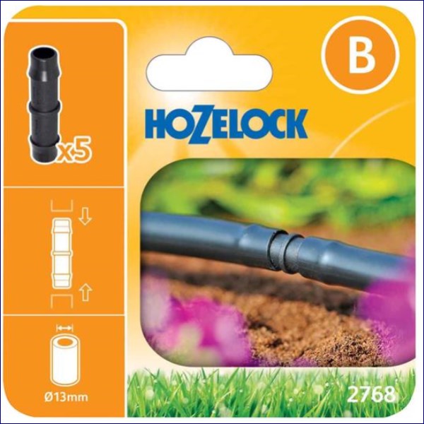 Pack of 5 Hozelock 2768 Straight Connectors for use with Ø13mm (1/2in) supply tube.