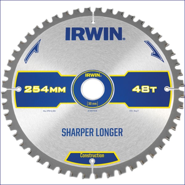 IRWIN® Construction Mitre Circular Saw Blade 254 x 30mm x 48T ATB/Neg