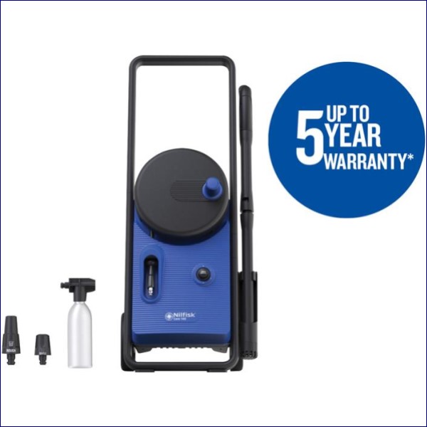 The Kew Nilfisk Alto CORE 140 Powercontrol Pressure Washer is a compact but powerful machine that can tackle any small to medium-sized area around the garden. It’s a handy size, lightweight, and has wheels making it easy to transport. A major feature of the CORE 140 Powercontrol is the 3-stage power control knob on the front of the machine that gives you the option to reduce the power of your machine in three stages; down from 100% to 80% and finally to 60%. The three most useful operating selections when using pressure washers.