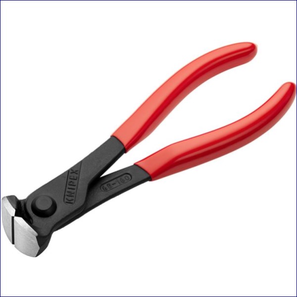 Knipex 68 01 Series End Cutting Pliers with dipped plastic coated handles. Ideal for hard and soft wire cutting. The edges are separately induction-hardened to a hardness of 60 HRc. Also suitable for twisting, binding and cutting soft and annealed tie wire used on reinforcing rods.