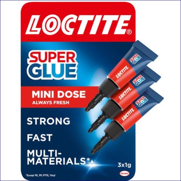 The Loctite Super Glue Original Mini Trio contains three one-shot tubes, so you’re always ready for a quick repair job on the go! Convenient small-sized pipette. small enough to fit into any sized bag. This multi-purpose glue helps you to easily handle any kind of small daily repair job around the house.