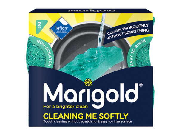 The Marigold Cleaning Me Softly is a non-scratch scourer that has a foamed back with a hygienic easy to rinse surface. Ideal for removing tough dirt without scratching delicate surfaces. They have been Teflon® tested and approved.