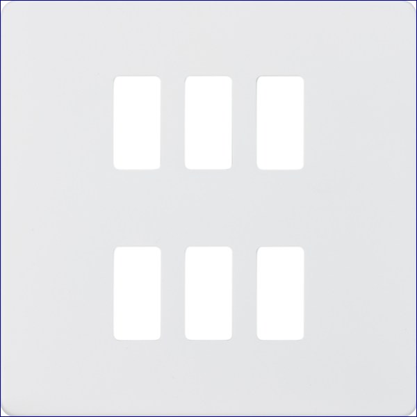 MLGDSF006MW | KNIGHTSBRIDGE SCREWLESS 6 GANG GRID FACEPLATE MATT WHITE