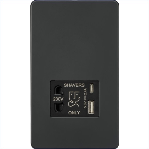 MLSF8909AT | KNIGHTSBRIDGE SHAVER SOCKET WITH DUAL USB A AND C SOCKETS ANTHRACITE WITH BLACK INSERT