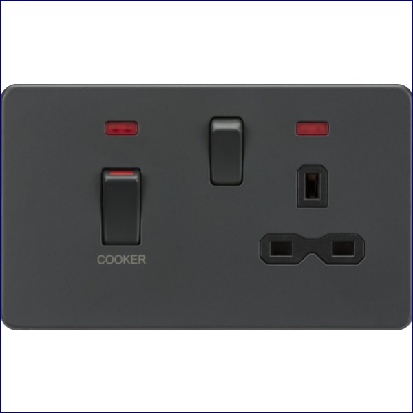 MLSFR83MNAT | KNIGHTSBRIDGE 45A DOUBLE POLE SWITCH WITH NEON AND 13A PLUG SOCKET ANTHRACITE