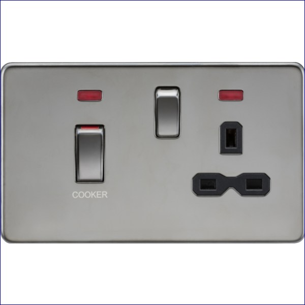 MLSFR83MNBN | KNIGHTSBRIDGE 45A DOUBLE POLE SWITCH WITH NEON AND 13A PLUG SOCKET BLACK NICKEL WITH BLACK INSERT