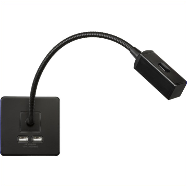 MLSFRLMB | KNIGHTSBRIDGE LED DIMMABLE READING LIGHT WITH DUAL USB A SOCKETS MATT BLACK
