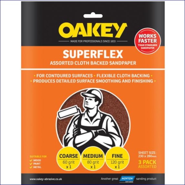 OAK26734 | Oakey Superflex Cloth Backed Aluminium Oxide Sheets 230 x 280mm Assorted (3)
