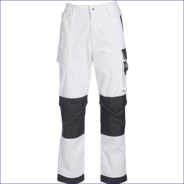 - Painter’s trousers made from hardwearing polycotton fabric with stain-resistant coating