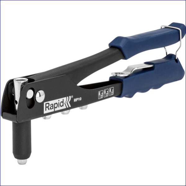 The Rapid RP10 Hand Riveter is designed for occasional use and is ideal for joining two pieces of thin metal, plastic, vinyl, leather or canvas together. It is also ideal for decorative applications.