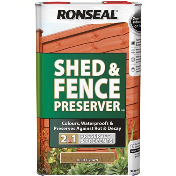 RSLSFLB5L | Ronseal Shed & Fence Preserver Light Brown 5 litre