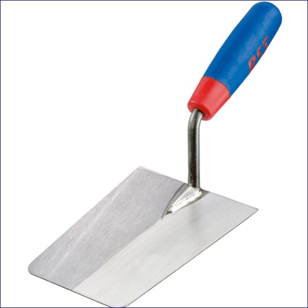 R.S.T Bucket trowel with carbon steel blade, hardened and tempered. Soft touch handle for user comfort.