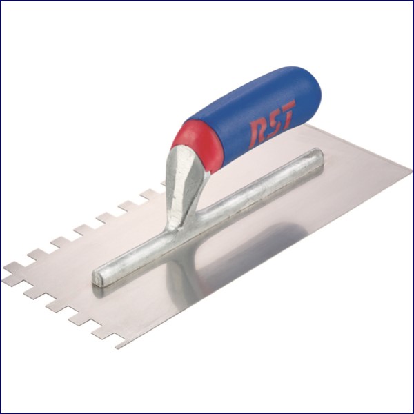 R.S.T. Notched trowel has a strong, durable all steel blade with square notches and is ideal for applying adhesive to walls and floors prior to applying tiles.