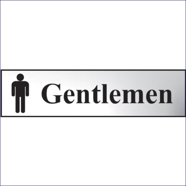 Polished chrome effect bathroom sign with black text/graphic. Printed using UV resistant inks.