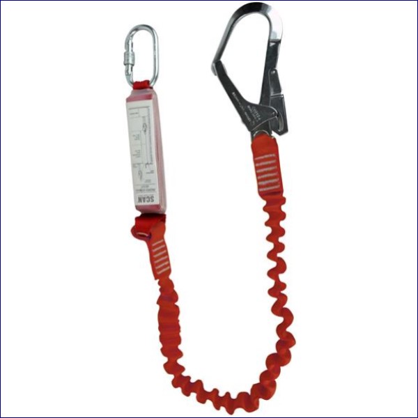 The Scan Fall Arrest Lanyard is a 1.95 metre Hook & Connect Lanyard. These are the connection between your harness and an anchor point. Made from 1.95m shock absorbing elasticated webbing, it has a 70mm gate opening lightweight scaffold hook, and an 18mm steel locking snap hook.