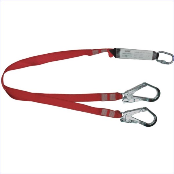 The Scan Fall Arrest Twin Lanyard works with the user’s safety harness. Light, comfortable and easy-to-use with little restriction to movement. The twin webbing is made from 100% polyester. Fitted with one integrated shock absorber carabiner and 2 large, forged hooks (strength >23kN).