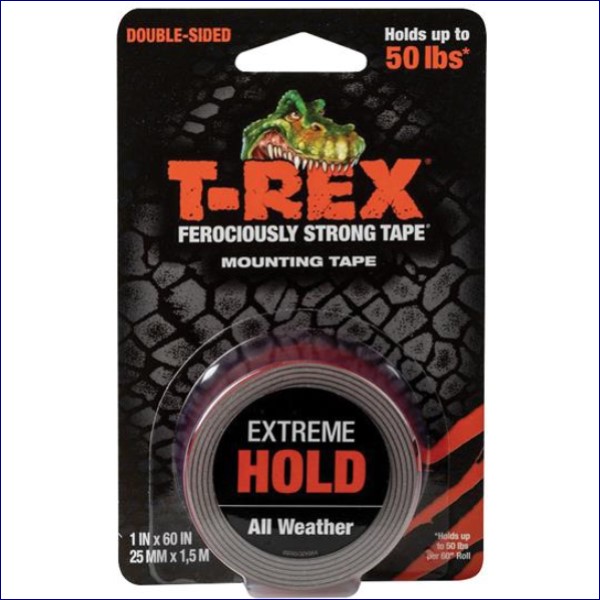 Shurtape T-REX® Extreme Hold Mounting Tape is ferociously strong in all types of weather. This double-sided tape provides a permanent application that works on most surfaces including metal, glass, wood, concrete, brick, tile and ceramic. An easy alternative to nails, screws, staples and glue. A 30.5mm (1.1/4in) strip will hold 454g (1lb).