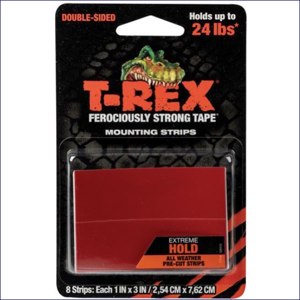 Shurtape T-REX® Extreme Hold Mounting Strips are ferociously strong in all types of weather. These double-sided strips provide a permanent application that works on most surfaces including metal, glass, wood, concrete, brick, tile and ceramic. An easy alternative to nails, screws, staples and glue. Each strip will hold up to 1.36kg (3lb).